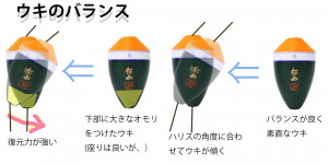 例えば、ウキの良し悪しを判断する尺度として、
